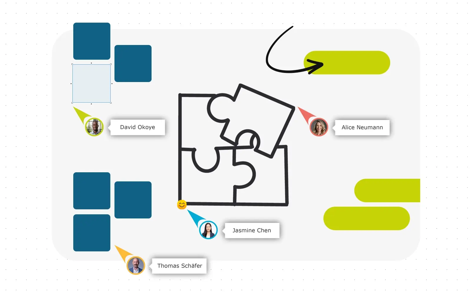 👉Ingmar und Mel von Collaboard mit allen Teilnehmenden gemeinsam interaktiv werden und Collaboard zum „Leben“ erwecken.